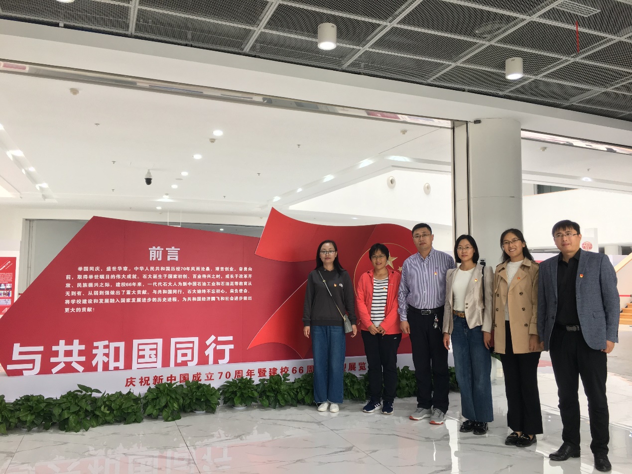 2019年10月9日下午,为庆祝新中国成立70周年,推进“不忘初心、牢记使命”主题教育活动,实验中心党支部开展主题党日活动,组织党员观看“与共和国同行——庆祝新中国成立70周年暨建校66周年大型展览”。