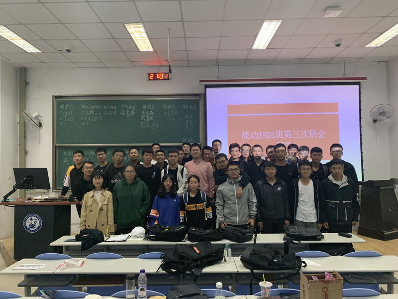 为加强师生交流,增强班级凝聚力能源与动力工程专业1901班全体成员于十月九日晚七点在东廊101举行能动1901第三次班会,通过投票选举的形式来竞选班委。此次班会由班主任助理赵晨曦主持会议,辅导员徐光辉老师、高明扬老师出席会议。