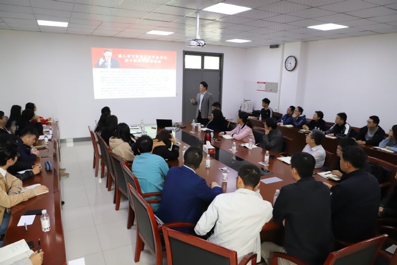 10月16日上午,beat365唯一官网常务副院长吴明铂以《“不忘初心、牢记使命”——加强科研团队建设,助推青年教师成长》为题为学院青年教师党员讲党课,学校主题教育第五指导组成员苏兴到场指导。