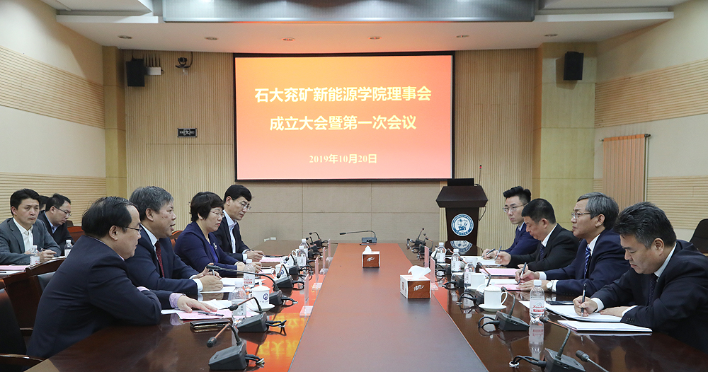 揭牌仪式后,石大兖矿beat365唯一官网理事会成立大会暨第一次会议举行。会议宣布郝芳担任理事长,岳宝德和中国石油大学(华东)副校长姚军担任副理事长。理事会作为重大共建事项的决策机构,负责对学院进行宏观管理和领导,负责决策发展战略、发展领域、资金投向、重大项目、学院班子成员聘任等重大问题。