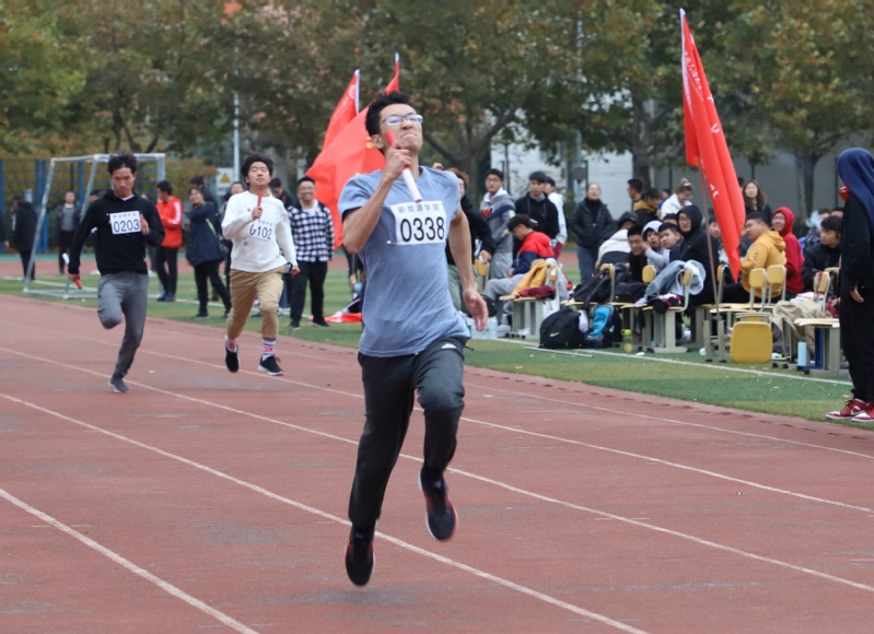此次运动会包括100米、4*100米接力、800米和1500米等9项径赛,铅球、标枪、三级跳等6项田赛。随着裁判员们一声声哨响,各项比赛正式展开角逐。在径赛跑道上,运动员们直指终点、挥洒汗水、敢于拼搏,完成速度与毅力的双重考验;田赛赛场上,运动员们一次次向自己的极限发起挑战,向更好的成绩发起冲击。经过一轮轮的角逐,最终本科生组一队获得团体第一名,三队获得团体第二名,研究生组六队获得团体第一名,陈文杰,陈思彤,介苏尔等获得优秀运动员奖,本科生组二队三队获得体育道德风尚奖。
