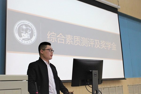 高名扬从学生综合素质测评方法切入进行介绍。他讲到,综合素质测评成绩分为三部分:专业学习测评成绩、基础性素质测评成绩及发展性素质测评成绩。其中,他提出:“无论是个人奖学金还是集体奖学金,其设置的初衷都是希望能激励广大学生勇于拼搏,积极进取。一个人走的快,一群人走的远,设置集体奖学金有利于形成良好的学风,充分调动学生的学习积极性。”至此,他再一次强调了班级计分考核的重要性,并要求各班班委应本着公平公正的原则,落实学习、生活、文体等各项方面的考核记录,为今后奖学金评定提供客观参考。同时,他要求班委在监督检查前应先严于律己,以优秀学生干部的标准要求自己,起到榜样模范作用。另外,高名扬还指出,科技创新也是我们的重要阵地,作为时代青年,应不断丰富自己专业文化知识,发挥自己的创造精神,投入到相关竞赛中。