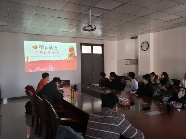 会议伊始,党支部组织集体观看了党的十九届四中全会报告视频,学习了习近平总书记代表中央政治局向全会作的工作报告。通过观看视频,支部成员对党的十九届四中全会的内容有了较为全面的了解。随后,冯文创同志使用PPT汇报的形式,对十九届四中全会的精神进行了详细解读。全会精神指出,十九届四中全会,是在庆祝新中国成立70周年的重要节点,向全面建成小康社会、实现第一个百年奋斗目标迈进的关键之年召开的一次重要会议。全会充分肯定我们党治理国家取得的历史性成就,全面总结我国国家制度和国家治理体系的显著优势,明确了加强和完善国家治理必须坚持的基本原则以及总体目标、工作要求,为坚定制度自信、实现伟大梦想提供了根本遵循、指明了正确方向。通过解读十九届四中全会精神,支部成员加深了对全会精神的理解,对全会做出的重大决定有了一定的认识。最后,支部组织与会成员观看了《榜样4》主题教育视频,学习优秀共产党员的事迹,进一步提高了支部成员的思想觉悟。