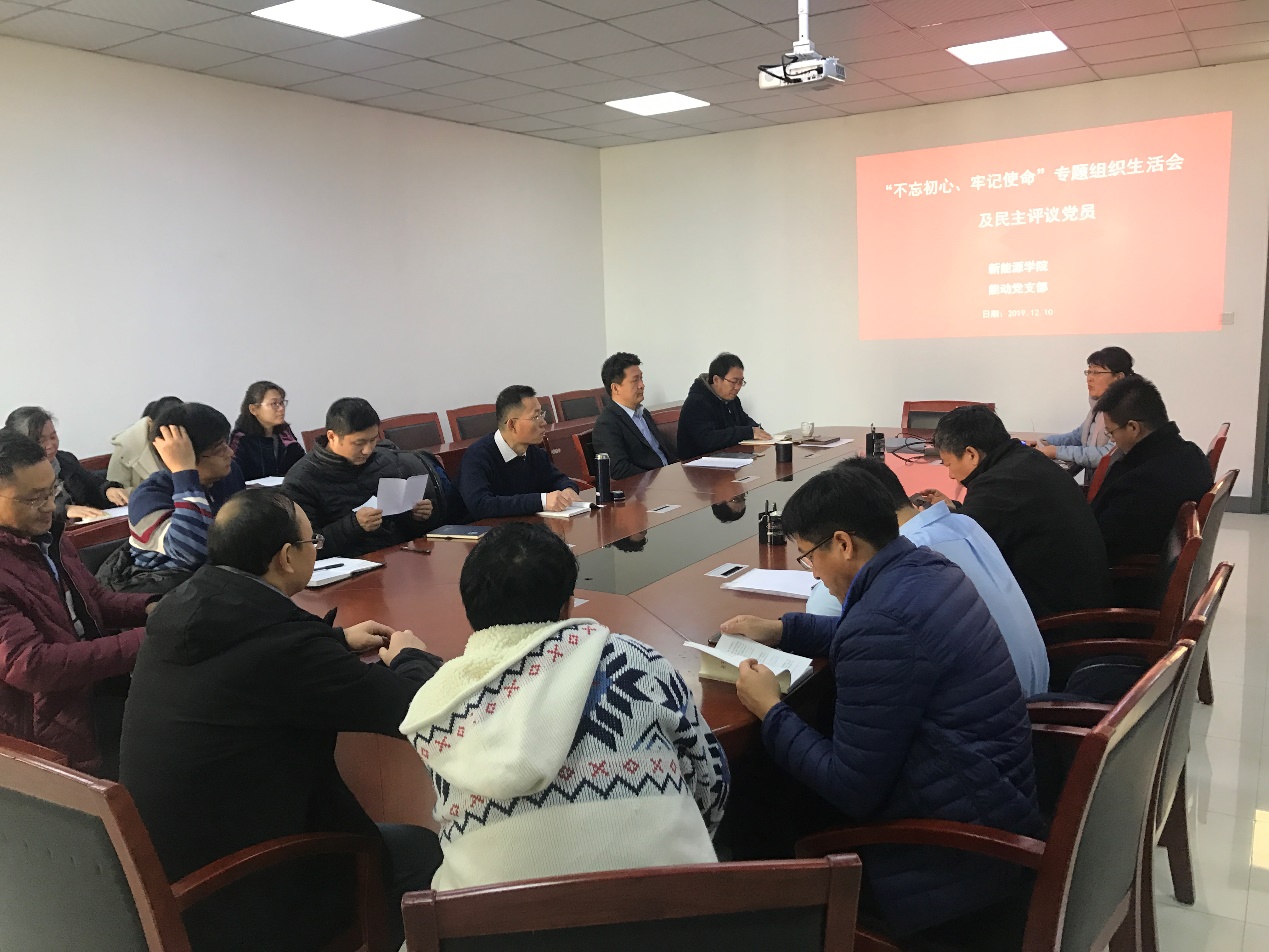 2019年12月10日上午,能动党支部在综合实验楼C433会议室召开“不忘初心、牢记使命”主题教育专题组织生活会并进行民主评议党员工作。能动党支部21名党员参加了活动。大会由支部书记张克舫同志主持。