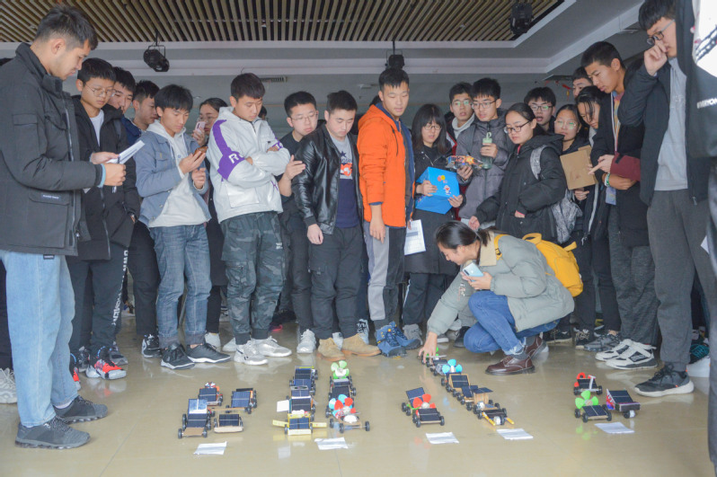 此次比赛分为小组赛和决赛两部分,小组赛中,将78支参赛队伍分为ABCDE5组,分为室内比赛与室外比赛两场。在室内比赛中,各组参赛作品通过在同一起点出发,参考参赛作品的行驶距离的长短,淘汰部分行驶距离过短的参赛作品。随后,比赛场地移至室外,通过将余下队伍在同一起点出发,驶过相同的行驶距离,测量各参赛队伍的比赛用时,淘汰部分比赛作品。在室内室外两组比赛余下作品中,共挑选出8支队伍参与决赛。决赛通过测量各参赛队伍的行驶速度决出最终名次。本次比赛有来自beat365唯一官网312名本科生组成的78支队伍参赛。经过一轮轮角逐,参考速度与行驶距离两方面,挑选出一等奖一名,二等奖两名与三等奖三名。获奖队伍均会颁发beat365唯一官网荣誉证书与相应奖励。此次比赛的一等奖获得者。能源与动力工程专业2019级1班王彤辉在赛后采访中表示,“此次比赛是各个展现自己特长的平台,同时也是一个锻炼各参赛队伍团队合作的机会。参加这次比赛给我收获是牢固队友间的情感,习得了新的技能,感受到了团队的重要性等等。”