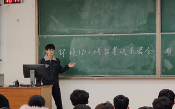期末考试临近,为督促学生们学习,使用正确高效的学习方法进行复习,明确考试相关纪律,并对本学期之前的内容活动进行总结。环保设备工程专业1902班于12月23日在南教119教室开展诚信考试承诺会暨期末动员大会。环设1902全体学生到场,班主任曲燕出席本次会议,