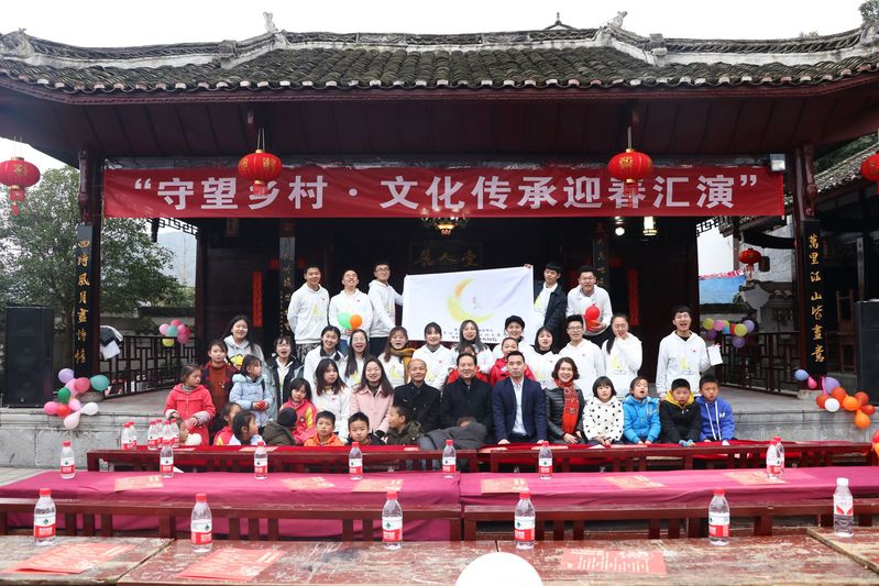 “言以载道,文以修身。”本着支教结友谊,携手育英才的理念,2020年1月18日爱之翼青少年助学中心、栀沐青年公益发展中心翼微光遵义实践队、吉林动画学院甘露青年支教团、绥阳大学生联合会携手在贵州省遵义市民兴村杜家堰坎古庭院举办了名为“守望乡村,文化传承迎春汇演”的活动。出席本次汇演的有著名作曲家杜兴成、绥阳县未成年人保护协会代表杜兴权、绥阳县团委代表、绥阳县检察院代表、绥阳县教育局代表、绥阳县文化旅游局代表、三和小学校长蒋进、爱之翼创始人杨忠永,爱之翼执行会长陈晓树、以及东望志愿者、县义工协会志愿者。