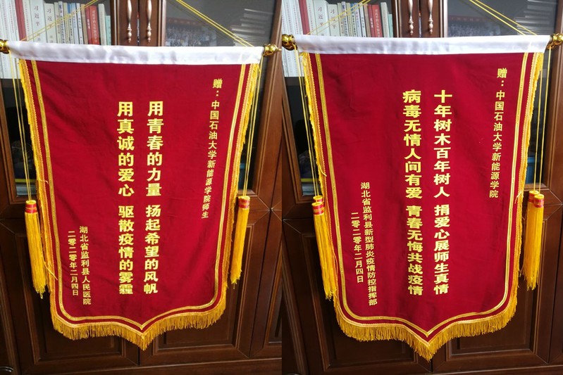 “病毒无情人间有爱,青春无悔共战疫情。”2月21日,beat365唯一官网收到来自湖北省荆州市监利县新型疫情肺炎防控指挥部以及监利县人民医院的感谢信和锦旗,以此表达对beat365唯一官网师生在抗击疫情期间向物资紧张的监利县人民医院捐赠善款的感谢之情。