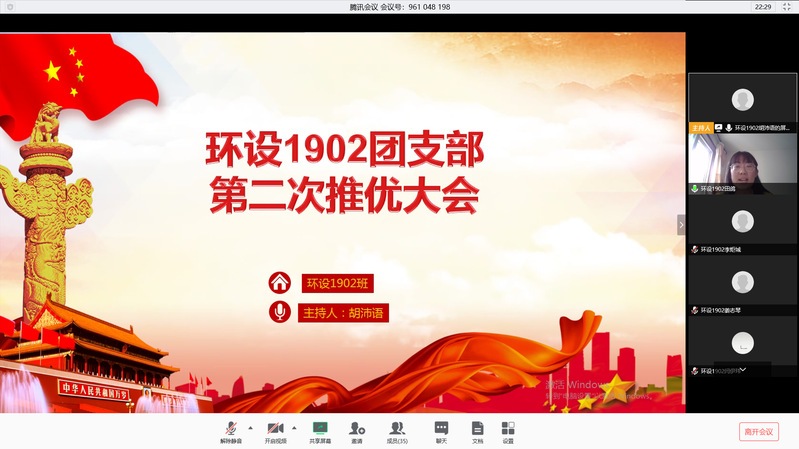 为进一步扩充党建队伍选拔优秀人才,确保党员推优的质量。3月8日,环保设备工程1902班团支书胡沛语组织线上第二次推优大会,班主任助理邢宁宁,环设1902全体学生参与本次推优大会,本次推优采取答辩的方式。
