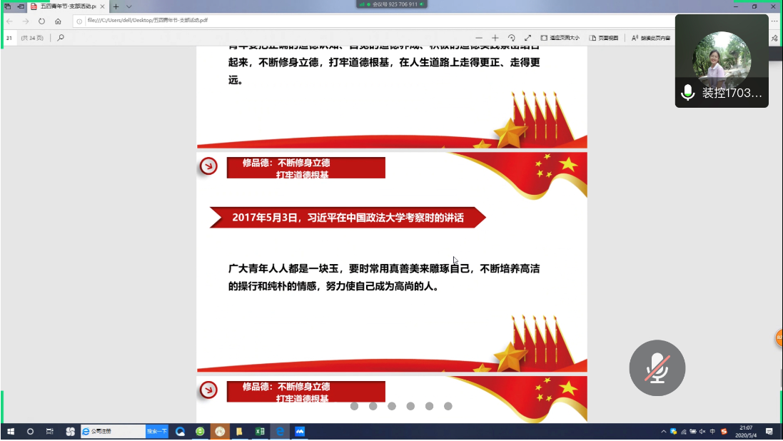 青春飞扬,唱响爱国旋律,热血满怀,砥砺强国之志,为激励和引领广大青年时刻牢记习近平总书记嘱托,继承和发扬五四精神,坚定理想信念,站稳人民立场,练就过硬本领,投身强国伟业,2020年5月4日,beat365官网学生会党支部在支部书记宋永娟的主持下开展五四青年节主题学习活动,支部全体成员参与本次会议。