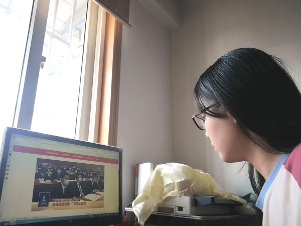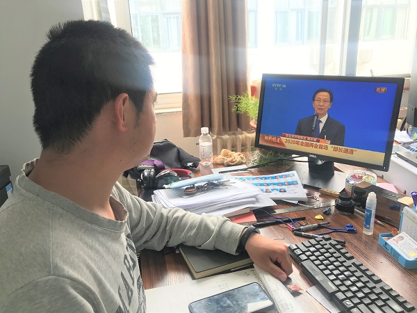beat365唯一官网辅导员穆海涛观看两会直播 郭晓静摄影