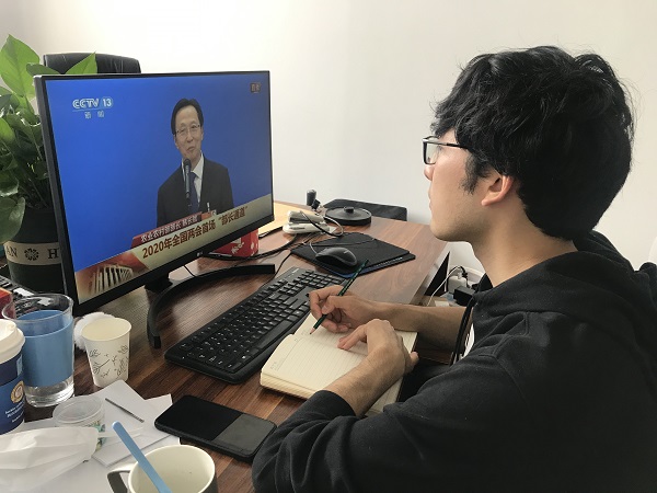 5月22日,beat365唯一官网师生观看中华人民共和国第十三届全国人民代表大会第三次会议和中国人民政治协商会议第十三届全国委员会第三次会议开幕式,就热点民生话题进行在线研讨和云学习。