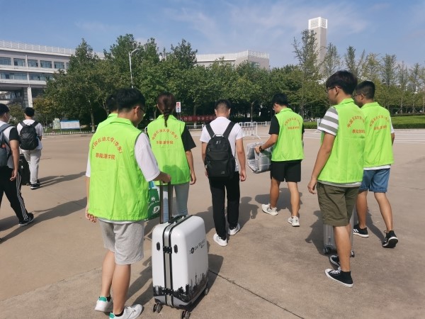 志愿者为学生搬运行李