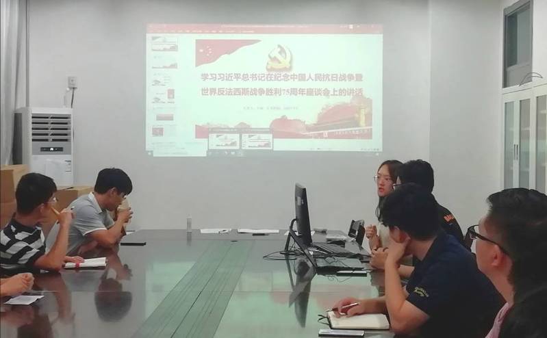 会议伊始,徐光辉老师强调了习近平总书记在纪念中国人民抗日战争暨世界反法西斯战争胜利75周年座谈会上强调的抗战精神,接着由刘斌同志带领大家一起详细学习了习近平总书记在纪念中国人民抗日战争暨世界反法西斯战争胜利75周年座谈会上的讲话,全体党员也就自己的职责和对抗战精神的理解展开了讨论,明确了学生党员应有的使命与担当,也纷纷表示,作为新时代的学生党员,要将个人的理想和祖国的前途、民族的命运紧紧联系在一起,锤炼专业本领,以青春之我、奋斗之我绘就最亮丽的人生底色,继承和弘扬伟大抗战精神,要做和平发展的积极倡导者和实践者,多做实事、会做新事、敢做难事,要为实现中华民族伟大复兴而不断奋斗。王乐佳同志在带领大家学习《习近平谈治国理政》中也强调了作为学生党员,要增强党员意识,自觉承担起助推学校立德树人根本任务的责任和使命,能够吃苦在前,享受在后,为学校的发展建设做贡献。要在学院和班级工作中挑起大梁,做事情有条理有计划,勇于承担重要任务,进取心和责任感强烈,始终做到讲奉献有担当,始终牢记党员的责任。