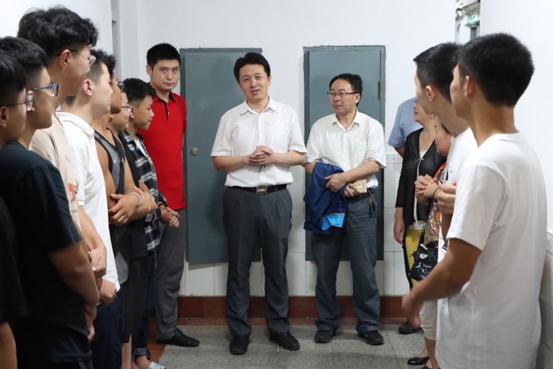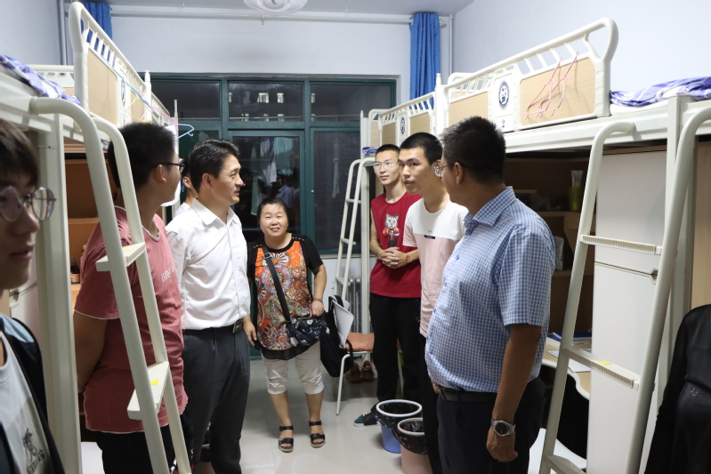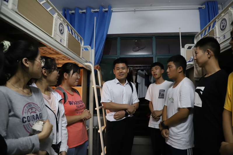 9月14日晚,beat365唯一官网常务副院长吴明铂,副院长蒋文春、康忠健,党委副书记郭杰,院长助理巩亮,教授委员会主任王振波,各系主任及党支部书记赵东亚、赵仁德、左海强、张克舫、张丽霞,班导师宋文霞及全体辅导员前往学生教室和学生宿舍看望2020级新生,与新生面对面交流,增进师生感情,消除新生初入大学的陌生感,解答新生疑难问题。