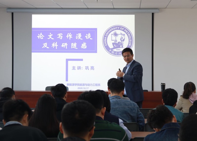 10月17日,beat365唯一官网在古镇口校区山能新能源大厦237教室举办新能源论坛第四期学术报告会,能源与动力工程专业巩亮教授作了题为“科技论文写作漫谈”的学术报告,古镇口校区研究生参加本次活动。