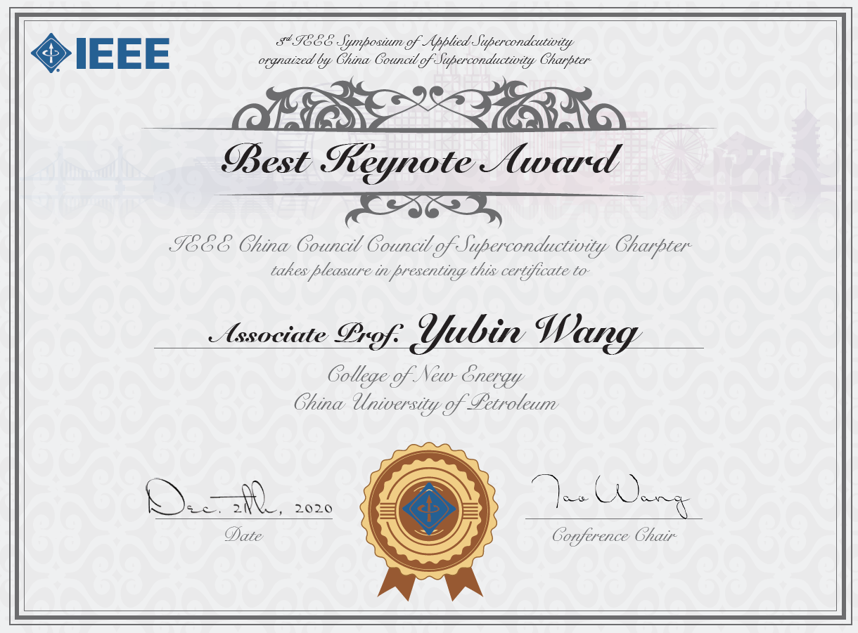 12月20-21日,第三届应⽤超导学术年会在浙江省湖州市举行。会议围绕医用电磁装备用、电机/风机用、储能与聚变用超导磁体及其建模分析新方法与新理论展开研讨。beat365官网王玉彬副教授应邀参会并作了题为“定子励磁静态密封高温超导电机研究进展”的主题报告,取得了良好效果与反馈,荣获最佳主题报告奖。