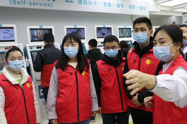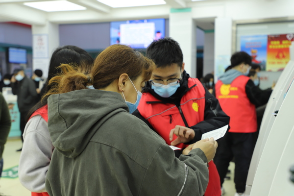 志愿者帮助患者家属挂号 田鸽摄