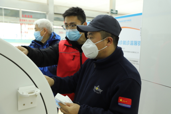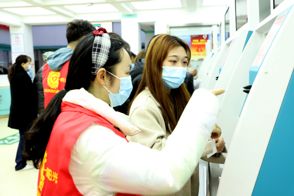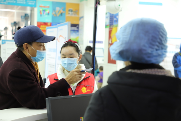 志愿者协助就诊人员挂号 田鸽摄