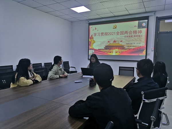 唐岛湾校区研会成员学习两会精神 李紫岩摄影