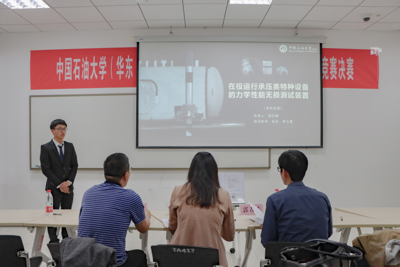 活动伊始,巩亮致开场词,他指出中国石油大学从各个层面为大学生科创活动提供保障,提供创新平台,并为节能减排项目建设提供支持。本次进入决赛的节能减排项目是各学院从预赛、复赛中层层选拔出来的,共有 27支队伍,多数队伍的项目已经获得国家专利或是发表相关学术论文。随后,各比赛队伍对本项目进行讲解答辩,并对老师们提出的问题进行解答。各老师就参赛的项目的可行性、科学性、创新点、工业成本、试验数据、实际操作等问题进行提问,并给出相关建议。其中《多级有机朗肯循环在工业废热回收的应用设计》、《基于微气泡生成技术的多管式旋流气浮除油器》和《“便捷选择"分类垃圾桶》等项目引起评委的注意,评委询问参赛项目的详细信息,并进行深入的分析,给出改进建议,三个项目最终获得特等奖。经过六个多小时,27支队伍顺利完成答辩,各评委对 27支队伍的参赛项目进行深入讨论研究,选拔出代表我校参加全国大学生节能减排社会实践竞赛的15个参赛项目。