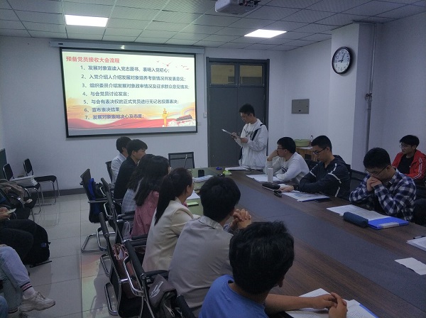 会议伊始,冯文创同志向全体参会人员宣读接收预备党员的流程及注意事项。根据大会议程,首先由发展对象宣读《入党志愿书》,简明扼要地汇报在提交入党申请书以来个人在思想、学习、生活和学生工作等方面的表现,真诚地表达了对党的忠诚和向往之情。之后其入党介绍人介绍发展对象培养考察情况,并对其能否入党表明了态度;袁晶同志汇报其政审和群众基础情况;与会党员对发展对象是否具备党员条件、能否入党进行实事求是地讨论,充分发表意见,肯定优点,指出不足,并最终由十四位正式党员进行无记名投票表决。经支部大会对发展对象逐一讨论、表决,最终认定于伯文等七位同志符合预备党员要求,确定接收其为预备党员。决议公布后,新接收预备党员对支部大会的讨论情况发表看法,谈了自己以后的努力方向和决心。会议最后,冯文创同志总结道:“新接收的预备党员一路走来,思想觉悟大大提升,同时你们的加入也为组织增添新活力,愿你们不忘初心、牢记使命,履行好党员的义务,发挥好党员的先锋模范作用。”