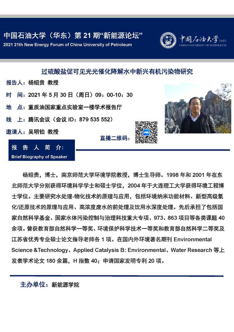 中国石油大学(华东)第21期“新能源论坛”通知