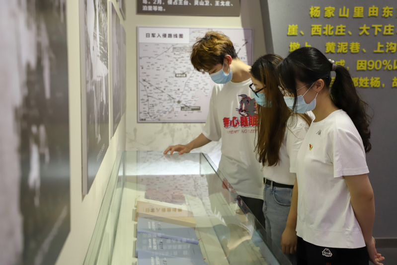 参观过程中,全体成员依次对“日寇铁蹄 践踏国土”、“中流砥柱 使命担当”、“百折不挠 浴血奋战”、“红色堡垒 铜墙铁壁”、“红色基因 代代传承”五个陈列布展进行了解学习。纪念馆讲解员通过大量的文物资料和图片,给成员们讲解杨家山里波澜壮阔的抗日历史。其中,基层党组织纷纷成立、“团练”开展抗日救亡、舍生忘死智送情报……一桩桩的历史事件让参观成员深刻感受到杨家山里人民在党的领导下表现出来的面对艰难困苦时无所畏惧的英雄气概、面对民族危亡时挺身而出、奉献一切的自我牺牲精神,面对侵略时血战到底、坚决维护民族独立和尊严的家国情怀。参观结束后,全体中共党员、中共预备党员面对党旗重温入党誓词,再次体会作为共产党员的责任感和使命感。“杨家山里的发展离不开党的正确领导,更离不开当地人民勇于开拓、自强不息的奋斗精神。我作为中共党员,更要承担起青年党员的责任与义务,强国有我!”beat365官网学生会党支部中共党员王伟龙说道。