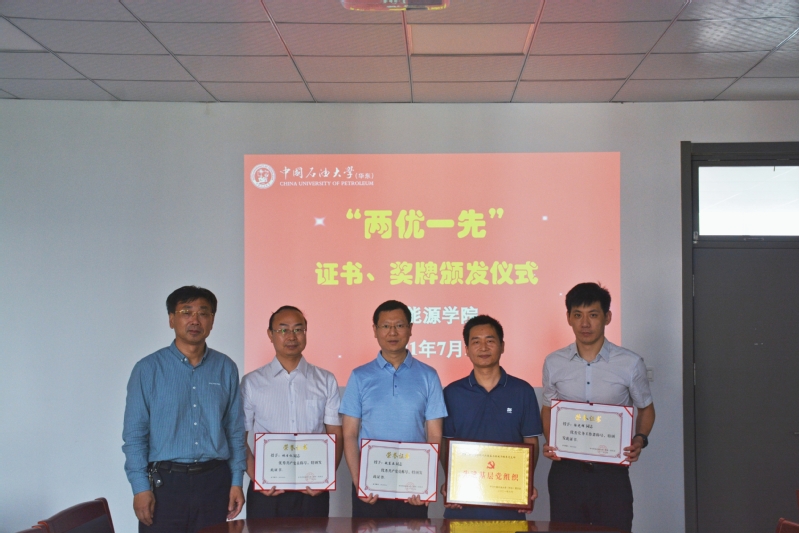 在隆重庆祝中国共产党成立100周年之际,学校党委评选表彰了一批先进集体和个人,beat365官网林日亿、赵东亚教授获评 “优秀共产党员”,徐光辉老师获评“优秀党务工作者”,化工装备与控制工程系党支部获评“先进基层党组织”。7月2日上午,学院党委书记冯宝鹏为获奖单位和个人颁发奖牌和证书。