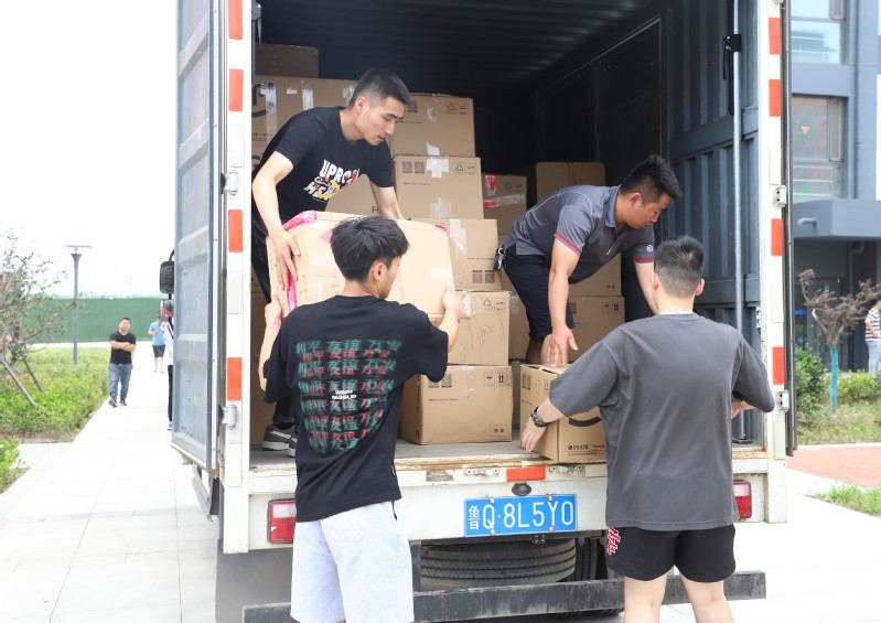 早8点,搬迁用货车及大巴车全部到位,学生包裹运到宿舍楼下固定区域后开始装车。行李全部装至货车后,学生分别坐上四辆大巴车,待全部就绪后一同发车。上午11点左右,全部车辆及人员到达古镇口校区,并进行卸车。