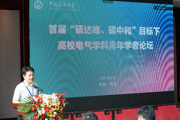 7月30日,首届“碳达峰、碳中和”目标下高校电气学科青年学者论坛在中国石油大学(华东)举行。本届论坛由中国石油大学(华东)石大山能beat365唯一官网承办,来自浙江大学、华中科技大学、上海交通大学、天津大学、禾望集团等十余所高校、企业的30余位专家学者参加了本次论坛。学校党委常委田丰,学院党委书记陈灵泉、常务副院长吴明铂、浙江大学电气工程学院党委书记汤海旸等领导专家参加有关活动。