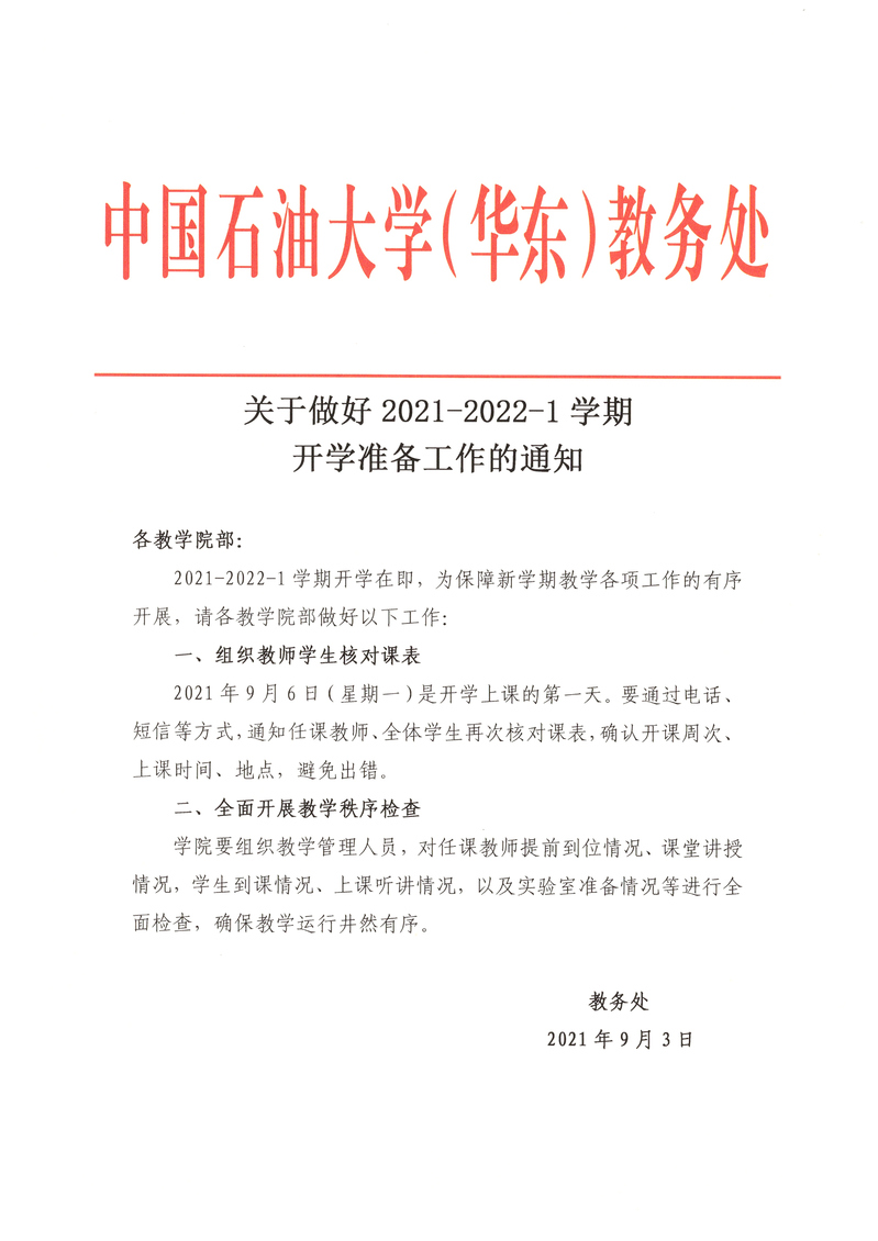 关于做好2021-2022-1学期开学准备工作的通知