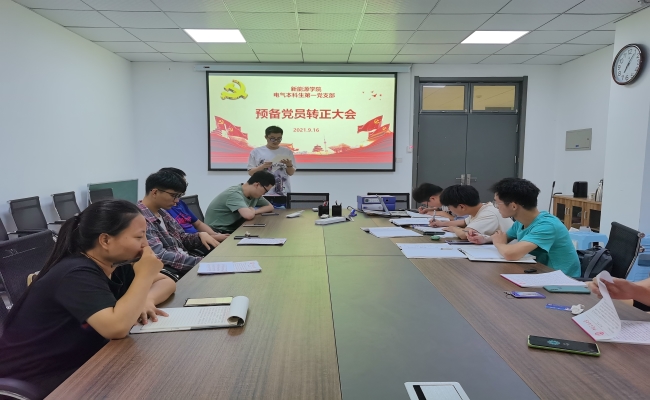 9月30日,beat365唯一官网电气工程及其自动化专业本科生第一党支部在特种楼C431会议室召开预备党员转正大会,本次会议由支部书记何海龙主持,主要讨论张家琛、苏龙、王延团等八位预备党员转为正式党员的问题。
