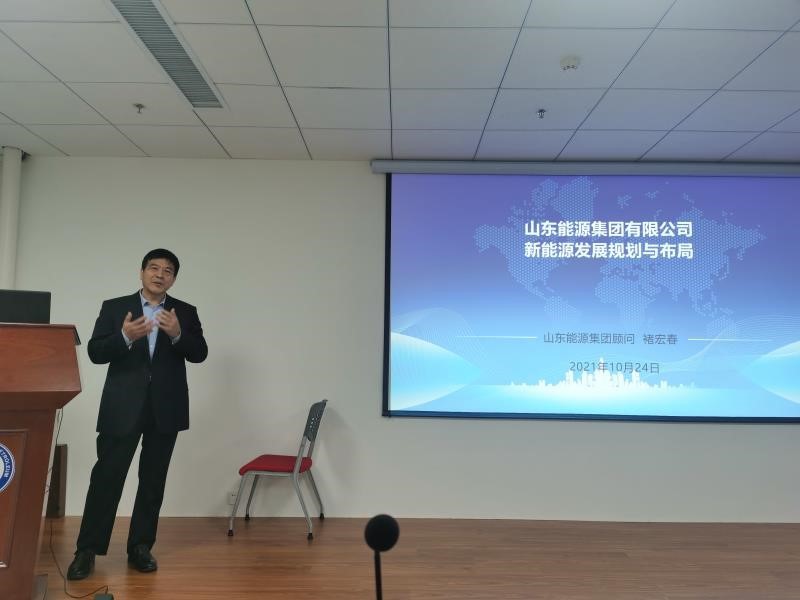 10月24日,石大山能beat365唯一官网理事褚宏春高级工程师做客第24期“新能源论坛”,作题为《山东能源集团有限公司新能源发展规划与布局》的报告。讲座由石大山能beat365唯一官网常务副院长吴明铂教授主持,副院长巩亮教授及近百名beat365唯一官网师生参加,就国家双碳目标下新能源的发展契机进行深入交流探讨。