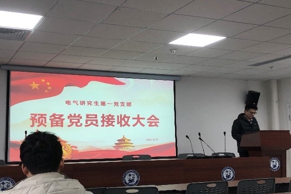 为响应党的号召,培养优秀党员,11月15日,电气工程及其自动化研究生第一党支部在山能新能源大厦237会议室举行了预备党员接收大会,会议由党支部副书记孙浩同志主持,党支部全体党员和积极分子现场参加了此次会议。