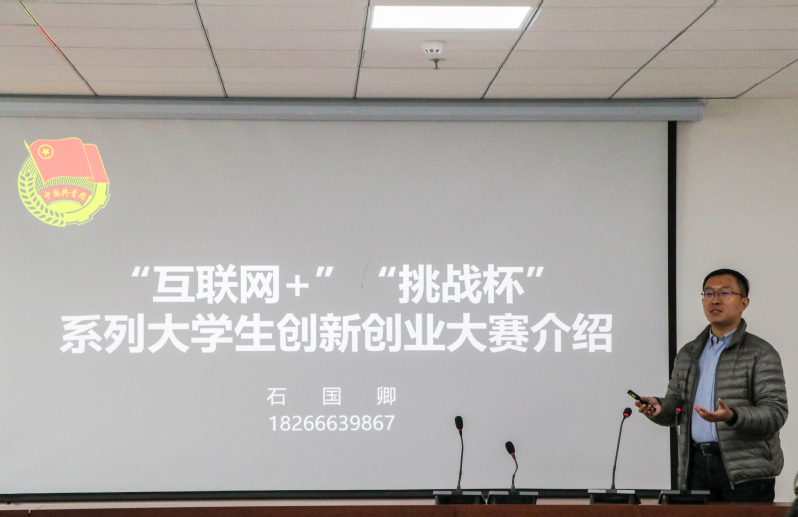 石国卿作创新创业工作报告,介绍了我校大学生创新创业大赛工作开展现状,重点介绍“互联网+”“挑战杯”等“三大赛”。石国卿指出:创新创业大赛的举办旨在引导和激励高校学生实事求是、刻苦钻研、勇于创新、多出成果、提高素质,培养学生创新精神和实践能力,并在此基础上促进高校学生课外学术科技活动的蓬勃开展,发现和培养一批在学术科技上有作为、有潜力的优秀人才。