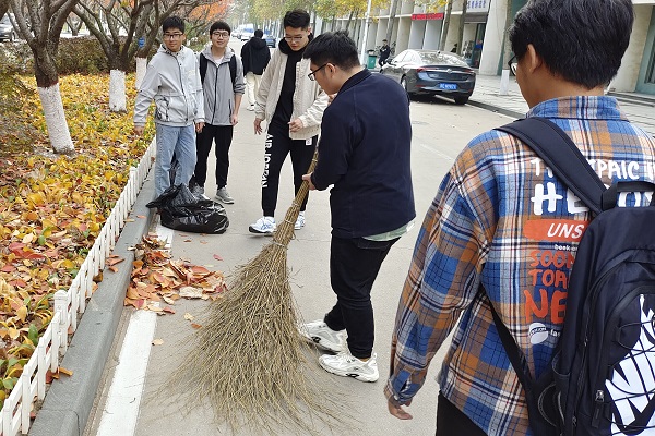 活动伊始,张磊为在场的学生分配了劳动用具并将其分成若干个小组,并向大家介绍了本次活动的意义和形式,使学生们对本次志愿活动有了更细致的认识,同时也为接下来的利用落叶做手工的活动做了铺垫。学生们了解了活动计划后,由活动负责人刘思远为大家规定了清扫区域。学生们在领取了劳动用具后,便有序参与到自己所负责区域的清扫工作中,与此同时,工作人员在维持活动秩序、保证活动顺利开展的同时,也参与到本次清扫活动中。在活动的最后环节,学生们将自己清扫的落叶带回并用这些落叶做了一次手工作品,至此活动圆满结束。活动结束后,环保设备工程专业2001班学生张思芝表示:“这次活动不仅提高了同学们的环保意识,同时也培养了同学们的合作动手能力,希望以后能多多开展类似活动。”
