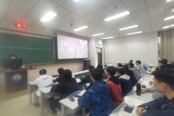 首先,心理委员彭德煊为大家进行了毒品有关知识的讲解。包括毒品的种类:鸦片,海洛因,冰毒,吗啡,大麻,可卡因等。重点介绍了毒品的对身体危害和对人精神的摧残。警示学生一定要远离毒品,拒绝诱惑,尤其是不要受到所谓朋友的蛊惑去接触尝试毒品,走上不归路。唐睿泽为学生介绍了大学生吸毒的案例情况,真实惨痛的案例给了学生更大的触动。唐睿泽呼吁学生们积极学习禁毒知识,宣传禁毒知识,遇见毒品交易吸食行为可以在确保自身安全的情况下报警,但不要亲身上前组织,以免受到伤害。最后环节,唐睿泽为学生们播放了禁毒宣传短片,短片更为系统全面的讲解了毒品和禁毒相关的知识,随后梁峰瑚,杨林,王一帆学生为学生们分享了自己的感想。