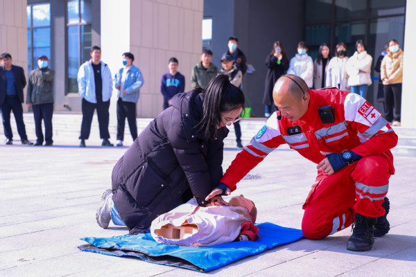 “原来心肺复苏的每一步都有这么严格的要求,学到了,学到了。”上午9点30分,随着防火警报声的拉响,古镇口校区消防应急演练正式开始,在新能源大厦学习工作的全体师生按照规划的疏散路线,在疏散引导员的指示下迅速有序撤离教室,集中疏散至新能源大厦东门空地,整个疏散过程迅速而有序。学生集结完毕后,保卫处科长孙乐民为现场师生讲解消防安全常识,示范灭火器的操作方法,现场师生进行了灭火器的实际操作,对模拟火场进行扑灭。青岛红十字搜救队急救员于涛为现场师生讲授心肺复苏急救术以及人工呼吸的正确步骤,另外简单介绍了AED除颤仪的用途及操作流程,随后于涛对尝试体验急救术的学生进行了一对一的动作纠正及指导。此次消防应急演练通过理论与实践相结合的方式,切实培养了全体师生的整体急救安全技能,为做好火灾的预防工作奠定基础。