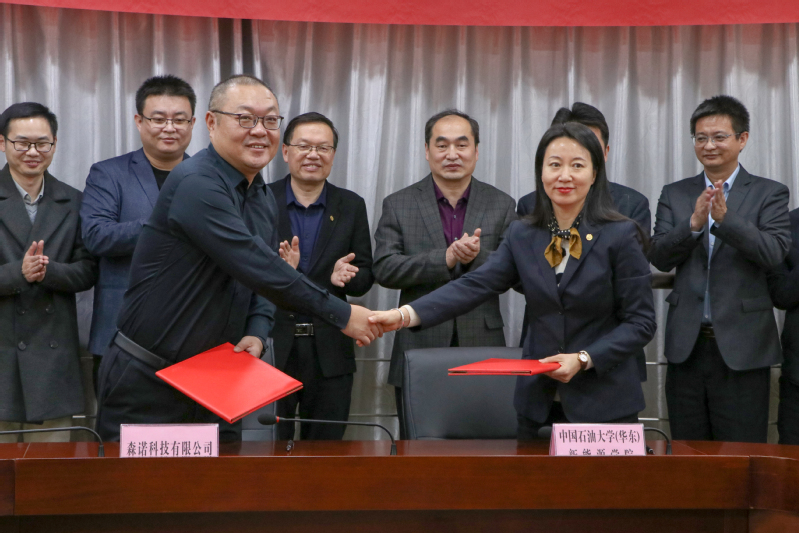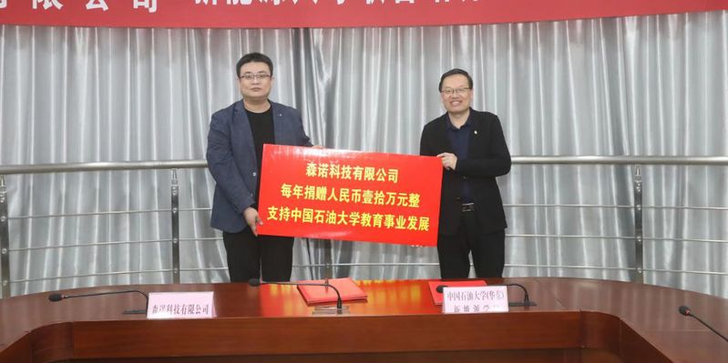 森诺科技有限公司每年向学校捐赠10万元,设立“森诺科技奖学金”,并支持中国石油大学(华东)beat365唯一官网学生思想政治教育工作及学生文体发展活动等。万云波代表学校接受捐赠,并向森诺科技有限公司颁发捐赠证书。山东省中国石油大学教育发展基金会副理事长兼秘书长王效美与森诺科技有限公司市场总监许卫国代表校企双方签订捐赠协议。