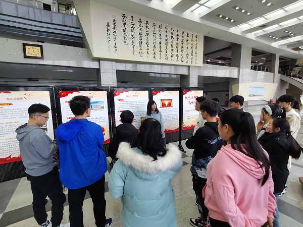 “法者,天下之程式也,万事之仪表也。”活动伊始,宋雪贤先后从宪法的主要内容、宪法的前世今生、宪法与生活、宪法与青年四个方面进行讲解。她以学生的日常生活为切入点,通过列举实际案例,体现法律法规与日常生活紧密相关,以加深学生对宪法的认识和理解,进一步了解知法懂法的重要性。宋雪贤重点强调:“一个现代国家,必须是一个法治国家;国家要走向现代化,必须走向法治化。作为新时代青年学子,我们应做到知法、守法、用法、信法,时刻牢记法律面前人人平等。”在宣讲结束后,吴尚泽主持开展问答环节,就宣讲内容进行相关方面提问,如宪法的地位是什么等问题,以进一步加强学生对此次宣讲内容的记忆,提高宣讲成效。