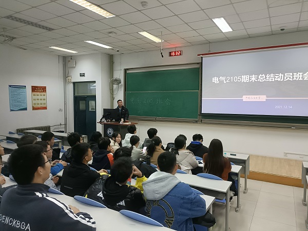 为总结本学期的班级工作,提高班级凝聚力,交流学习经验,分享大学生活感受,对即将到来的期末考试进行动员,电气工程及其自动化专业2105班于12月15日在讲堂群东廊102教室举行班会暨期末动员会,电气2105班全体成员共同参与本次活动,班长吴岩主持本次活动。