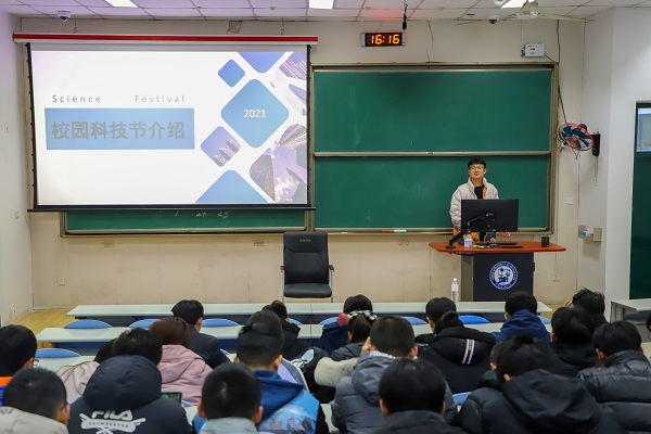 活动伊始,马艳雨向在场学生介绍中国共产党第十九届六中全会的主要内容,对十九届五中全会以来中央政治局的工作进行简单总结,从背景条件、重大成就以及历史经验三方面总结党的百年奋斗伟大成果及经验,她强调:“我们当代青年大学生要从党的百年奋斗中看清楚我们为什么能够成功,弄明白未来我们怎样才能继续成功,从思想行动上坚持党的正确领导,做好社会主义的接班人。”对于近日举办的第三十届大学生科技节,白少喆向大家介绍了此次科技节所举办的“理想·家”绿色建筑设计专项赛、人工智能挑战赛、能源2050未来场景海报设计大赛、服务青岛城市发展方案赛以及专利设计大赛等科技节系列竞赛,呼吁在场学生响应“大众创业、万众创新”的号召,积极投身科技节创新创业活动。