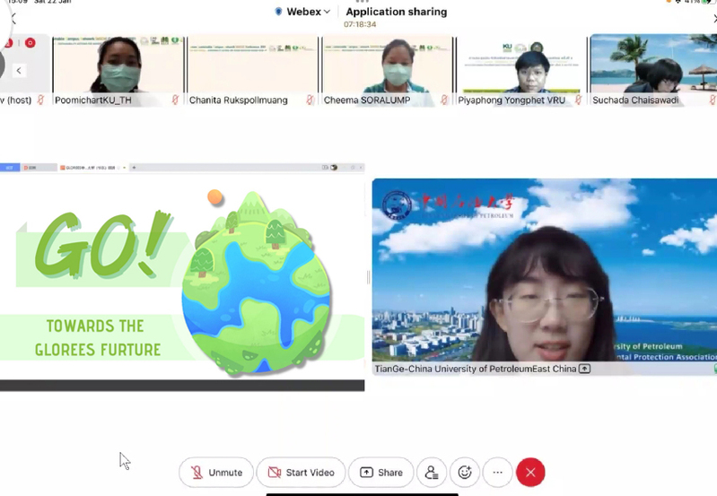会议由轮值主席——泰国SUN主席Ratchot Chompunich助理教授主持。学校Green Oil大学生绿色环保协会负责人田鸽作为中方学生代表以“GO!Towards the GLOREES Future”为题对学校绿色校园建设经验及实践成果进行系统性展示;并与浙江大学、日本千叶大学、韩国首尔大学、泰国暹罗大学等国内外高校代表积极交流、探讨,获得与会成员一致好评。
