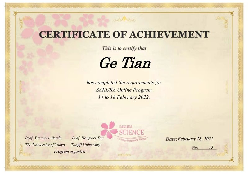 2022年2月14至18日,学院参加2022年度中日青少年科技交流计划(日方简称“樱花科技计划”)。学院学生田鸽所在小组科技汇报方案获优秀提案。