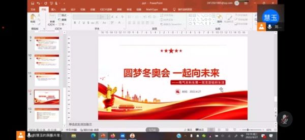 为学习贯彻冬奥精神,发挥冬奥精神对党支部成员的思想引领作用,不断丰富与提高党支部成员的政治素养以及思想品德修养。4月27日,电气本科生第一党支部聚焦北京冬奥会总结表彰大会于线上召开了4月份组织生活。会议由刘慧玉同志主持并主讲,党支部书记何海龙及支部全体成员参加。