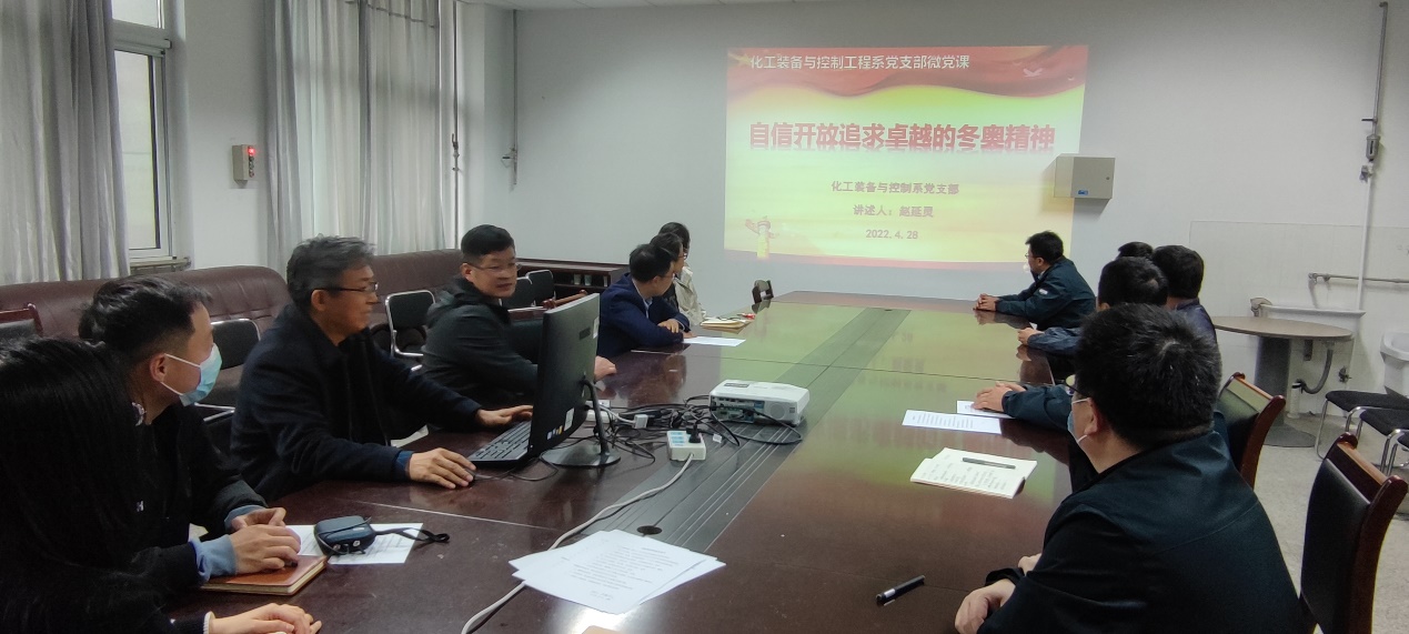 4月28日,装控系党支部开展本学期第三期“课程思政教学案例设计”系列微党课及主题党日活动,本次活动由支部书记左海强主持,采用线上线下同时进行,主会场设在唐岛湾校区,部分在古镇口校区上课的教师采用腾讯会议的方式线上参加。