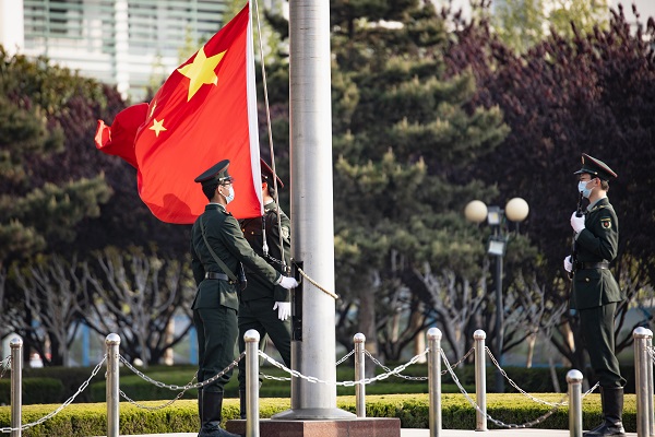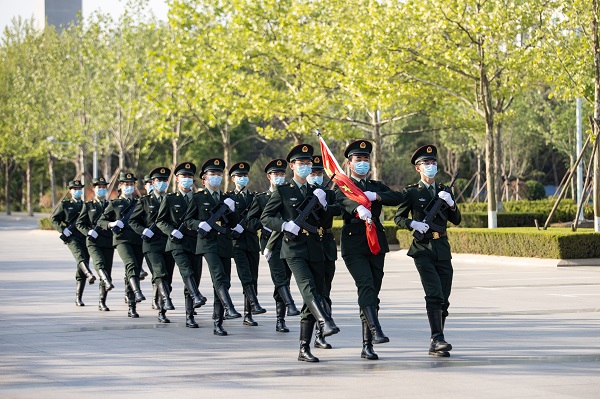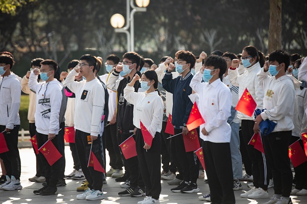 伴随着学院军乐队演奏的《义勇军进行曲》,全体学生奏唱国歌,行注目礼,国旗护卫队队员们迈着庄严的步伐,扬起五星红旗,在全体师生的注视下,五星红旗冉冉升起,迎风飘扬,在场的每一个人向国旗行注目礼,深怀崇高的敬意。首先,穆海涛在国旗下发表讲话,他说道:“每一个青年要以中华民族的伟大复兴为己任,每一个新能源学子都要有自己的志气、骨气、底气。每一位同学都要有自己的理想,在追求理想的过程中,遇到困难要有骨气去克服,不放弃,坚持奋斗,最后才能有自己的底气。”随后,学生会主席张殿卿发表“青春献礼二十大,强国有我新征程”演讲,他以2022冬奥会和冬残奥会主题口号“一起向未来”呼吁学生们练就过硬本领,勇担时代重任,以坚定的信念,做强国新青年。接着,学生会成员吴尚泽带领全体21级学生重温入团誓词,每一位学生严肃认真,怀着崇高的敬意庄严宣誓。活动最后,全体同学合唱团歌,伴随着雄壮激昂的共青团团歌,活动结束。