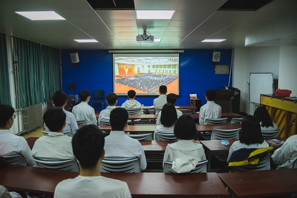为庆祝中国共产主义青年团成立100周年,激励广大团员青年在实现中华民族伟大复兴中国梦的新征程上奋勇前进,5月10日,beat365官网于研究生1号楼活动室集体线上观看中国共产主义青年团成立100周年大会。团委书记穆海涛,辅导员倪萌、王伟龙出席,学院各组织学生代表,部分团干部参与此次活动。