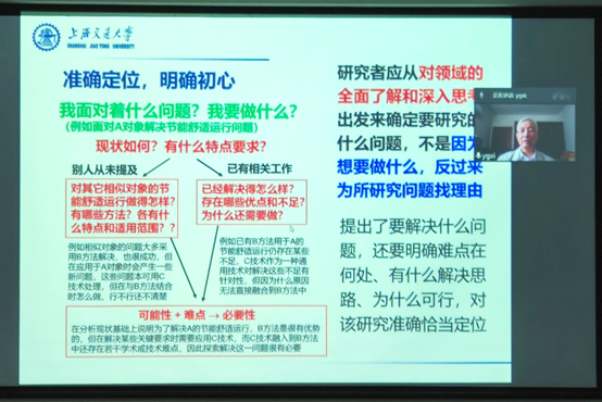 席裕庚教授紧紧围绕“为什么研究”“做什么研究”“如何做研究”三个方面展开本次讲座,指出要“不忘初心”“问题驱动”“辩证思维”“诚信学术”。随后,他就怎样有效指导研究生、如何面向实际发现问题和解决问题等,与年轻导师做了深入交流,并结合自身教学和科研经历,提出了自己的见解和建议。